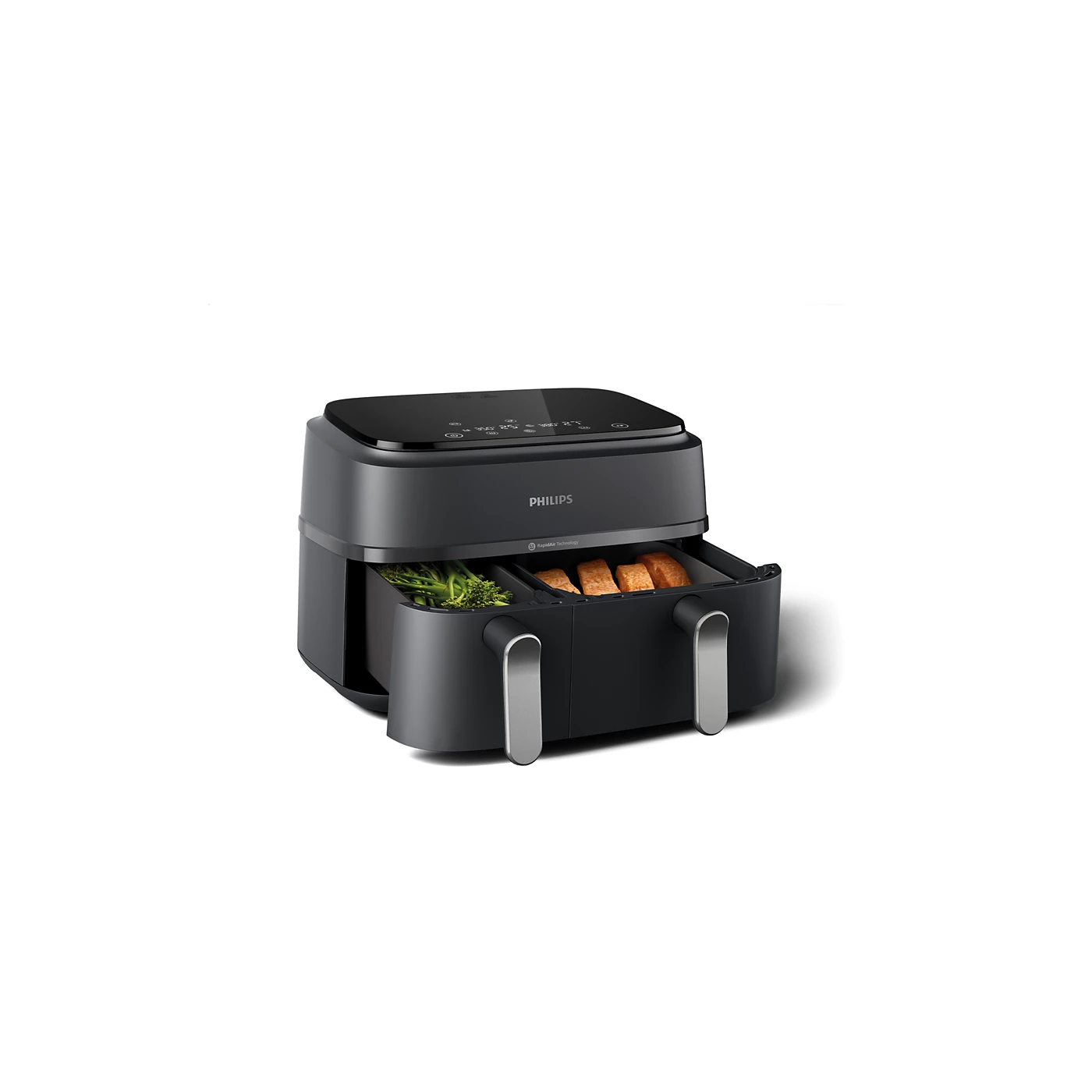 L'Airfryer Philips à Double Panier synchronise la cuisson de votre repas, pour que vos deux plats soient cuits à la perfection simultanément.